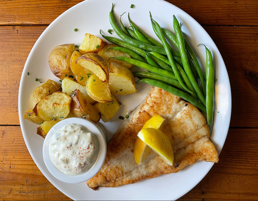 Pan Seared Halibut Housemade tartar, salt & vinegar roasted potatoes and fresh green beans. Available HOT starting at 4:00pm, and COLD To Go daily through Sunday, October 8th.