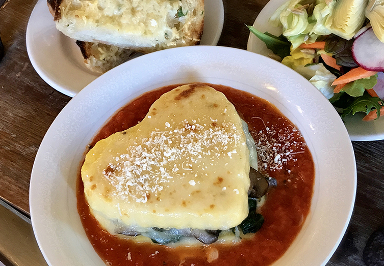 Choice of Prime Rib, Oven Poached Salmon with lemon dill sauce, or Layered Polenta Hearts with sauteed spinach, mushrooms, gorgonzola cheese and a light red sauce. See our Valentine’s Day menu for more details. All three dinners available February 13th & 14th COLD TO GO All Day Long. Open 7am-7pm.